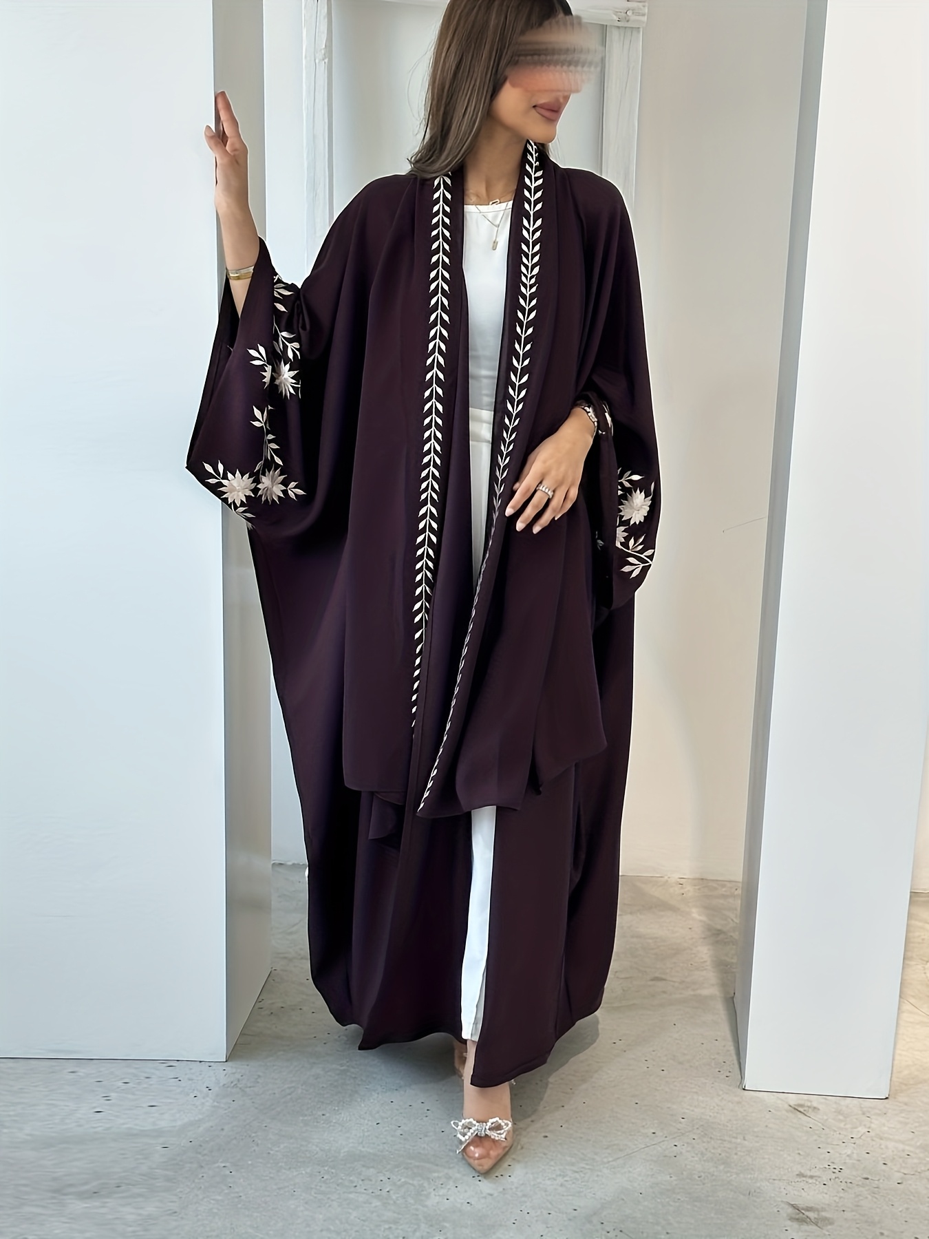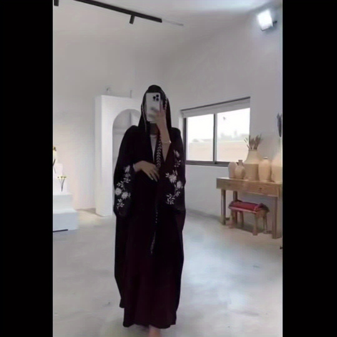 1pc Middle Eastern-Inspired Embroidered Scarf-Style Abaya Cardigan for Women - Solid Color Long Sleeve Loose Fit Breathable All-Season Versatile Muslim Bayan Elbiseleri