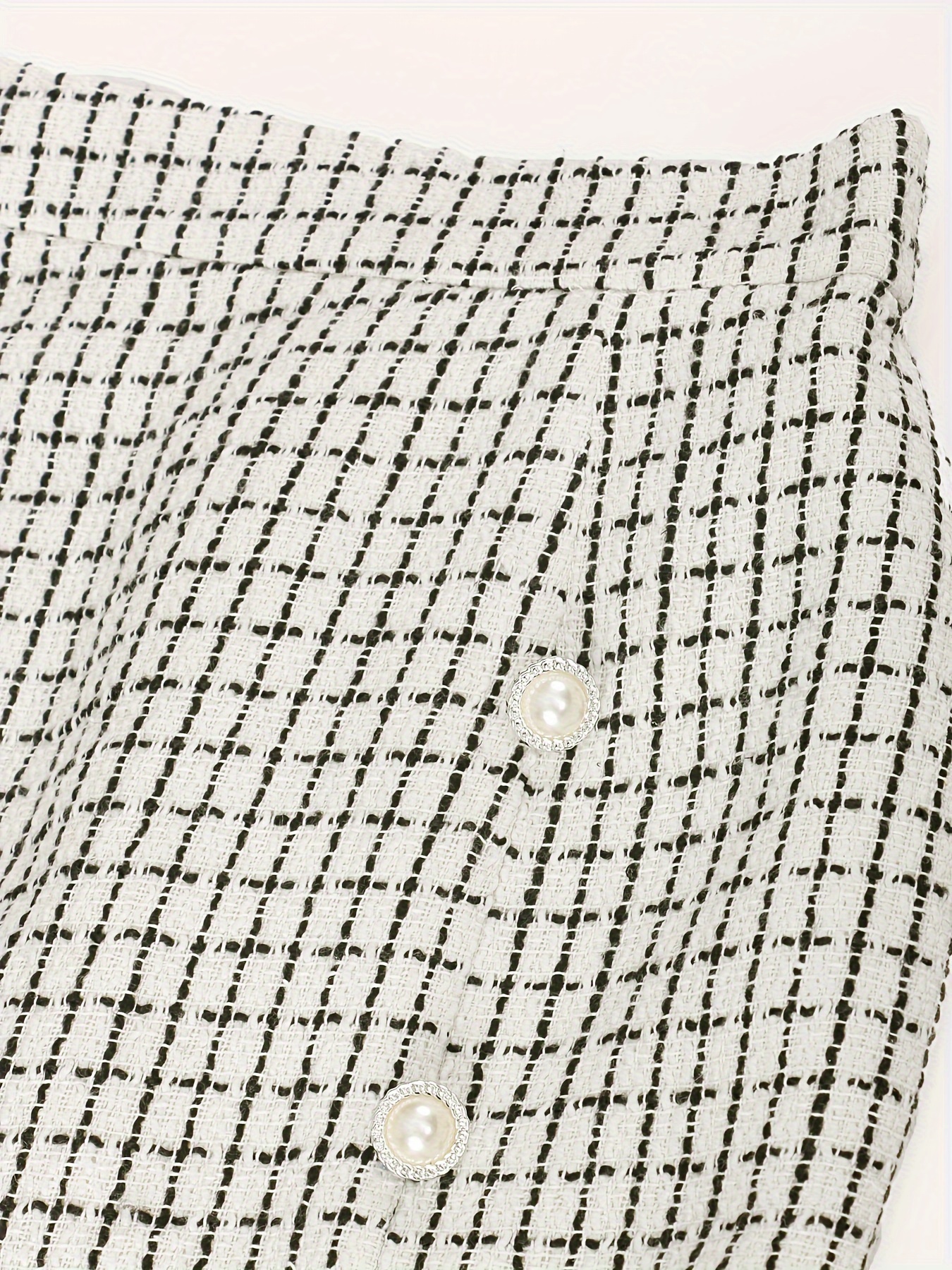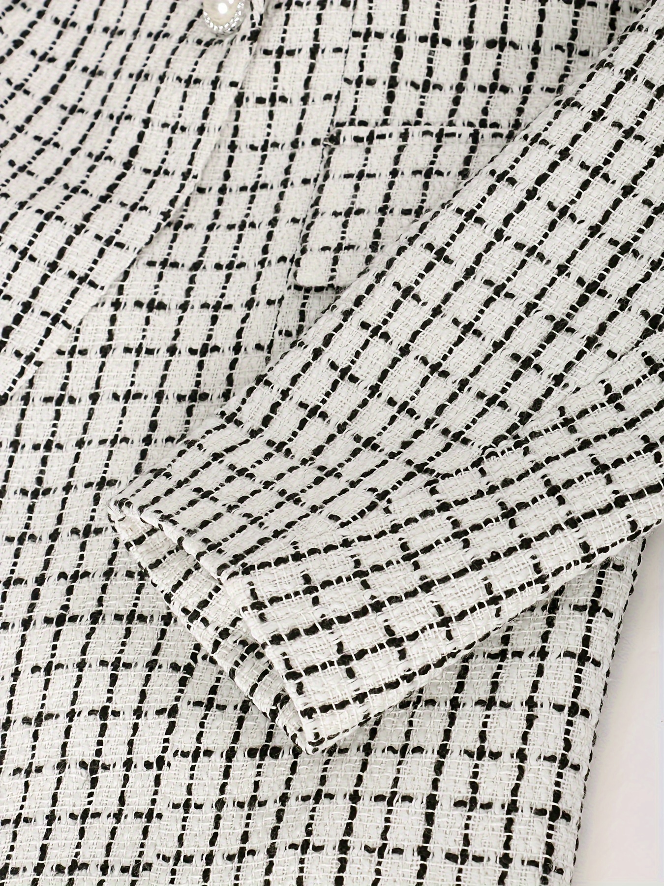 [Plaid Blazer Set] Women's Casual Two-Piece Set - Stylish Plaid Double-Breasted Blazer & Skirt with Pockets, Long Sleeve, Regular Fit, All-Season Wear, Casual Attire|Plaid Pattern|Polyester Fabric