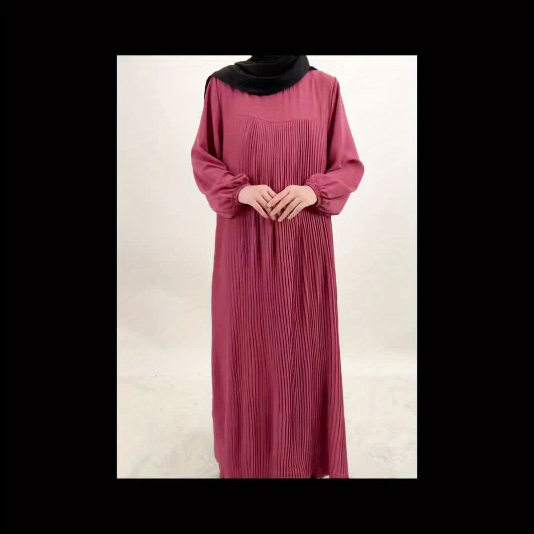 1pc Elegant holiday fashion versatile loose pleated rear zipper solid color suitable for daily wear comfortable casual loose comfortable Women's abaya dress.abayas for women muslim long sleeve dresses for women long frocks for women