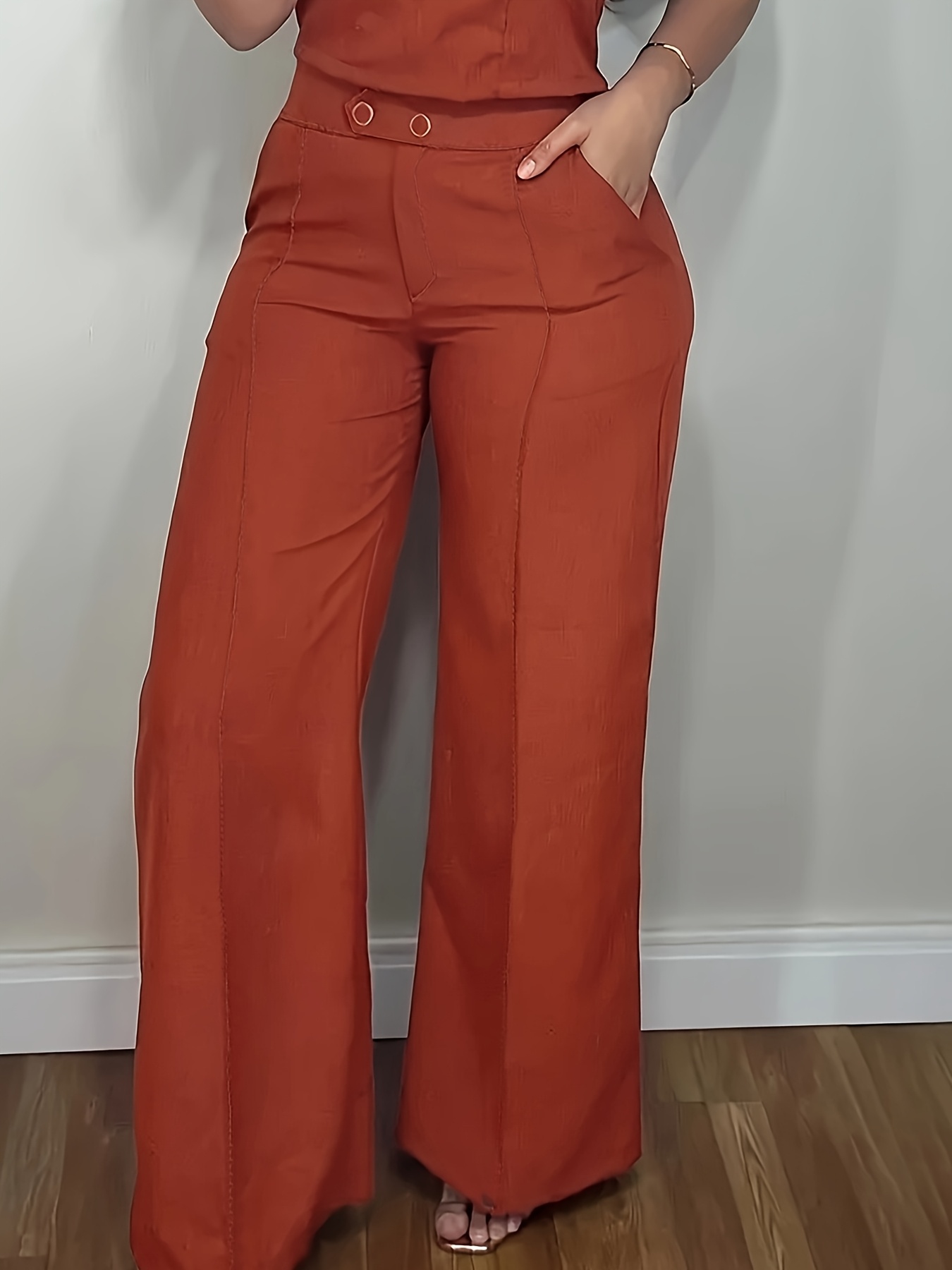 Chic Shoulder Strap Vest and Wide-Leg Pants Set, Minimalist Elegance