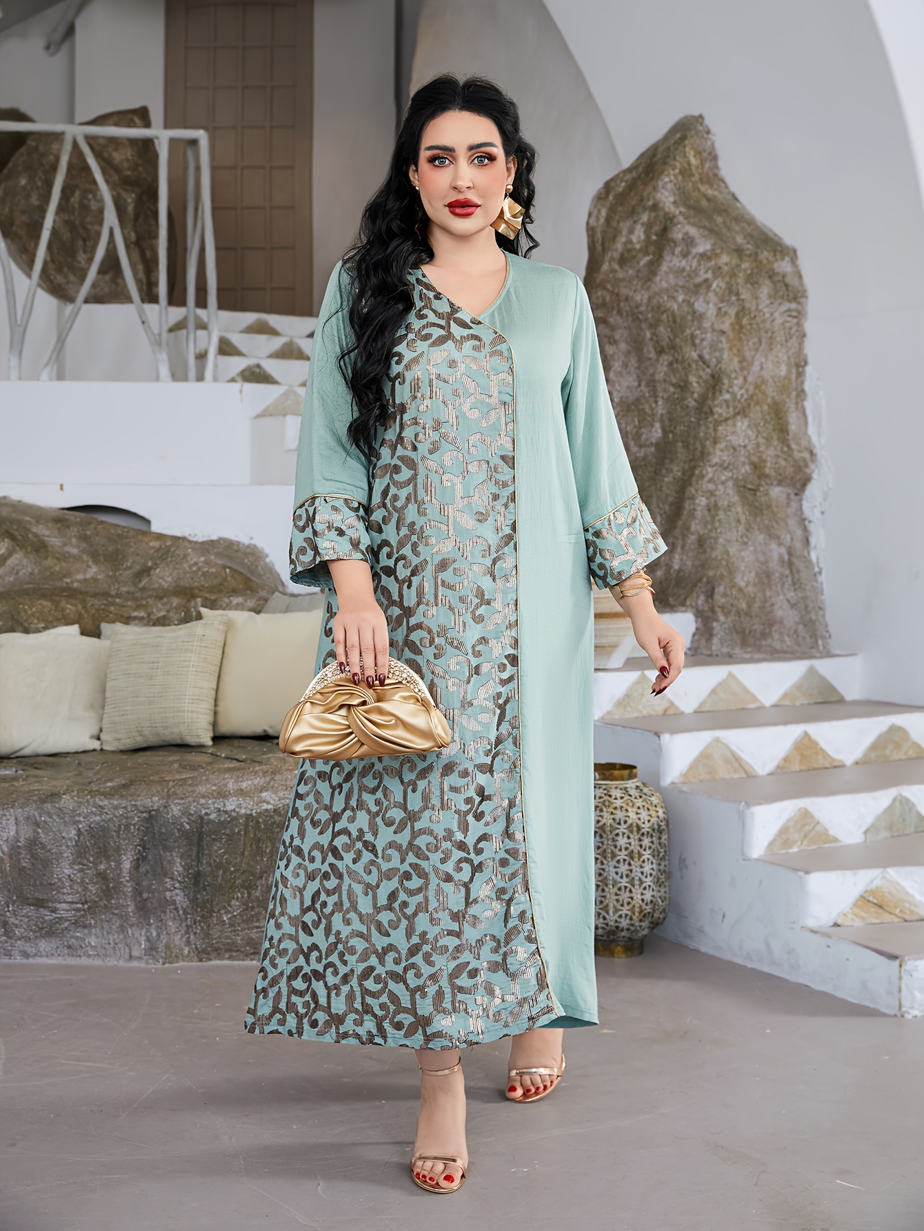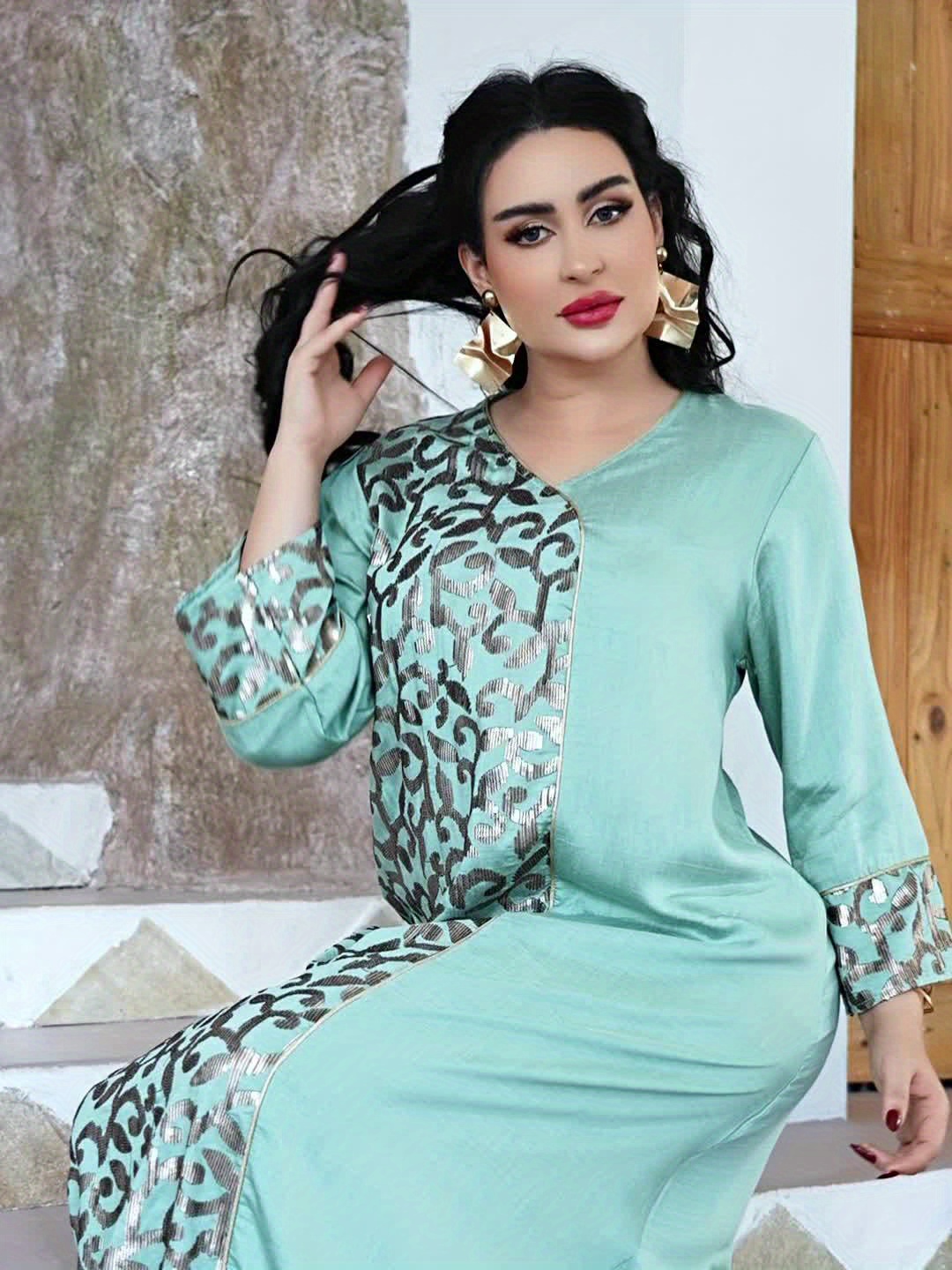Directional Heavy Industrial Beaded Embroidery Arabic Women's Elegant Dress JALABIA V-Neck Black Creative Asymmetrical Splicing Latest Design Saudi National Day Gown