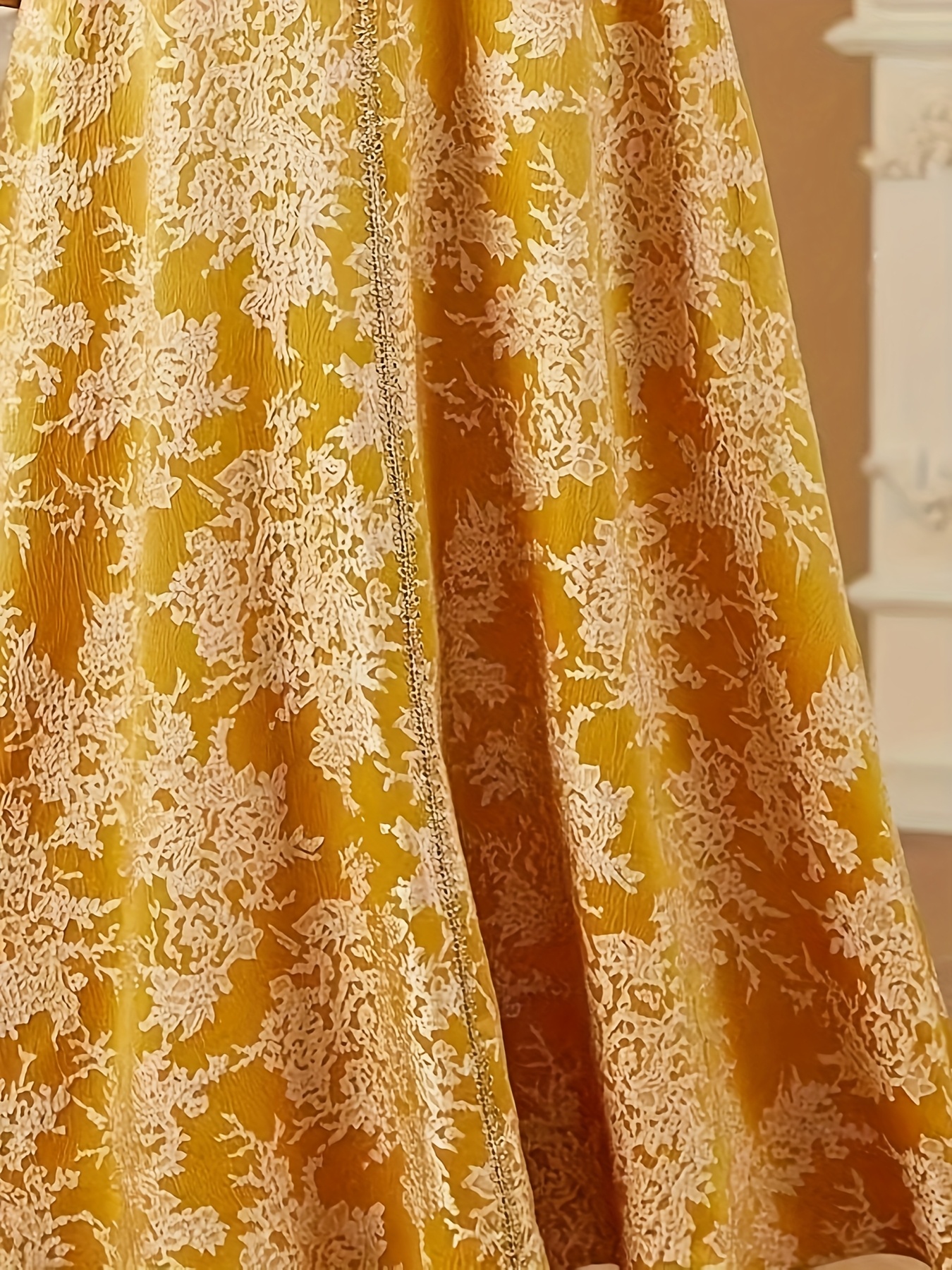 [Vintage Maxi Dress] Vintage-Inspired Elegant Maxi Dress | V-Neck, Long Sleeve, Floral Print, Loose Fit - Middle Eastern Embroidered Design for Vacation or Casual Wear
